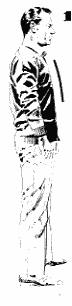 1. stovėti paprastai krūtinės, tarp kojų, didesnis už savo pečių pločiu.